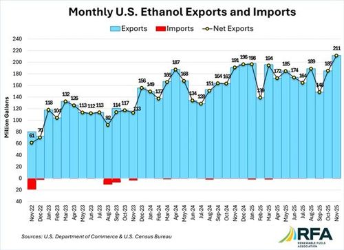The U.S. exported 209.87 million gallons of ethanol and 919,855 metric tons of distillers grains in February, according to data released by the USDA on April 2. Exports of both products were up when compared to February 2025.