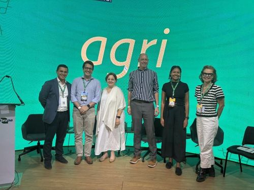 USGBC Director of Global Sustainability Carlos Suárez (leftmost) and USGBC Multilateral Policy Manager Linda Schmid (rightmost) recent attended COP30 to share the carbon reduction benefits of biofuels. / SOURCE: USGBC