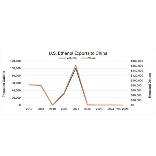 The U.S. exported 209.87 million gallons of ethanol and 919,855 metric tons of distillers grains in February, according to data released by the USDA on April 2. Exports of both products were up when compared to February 2025.